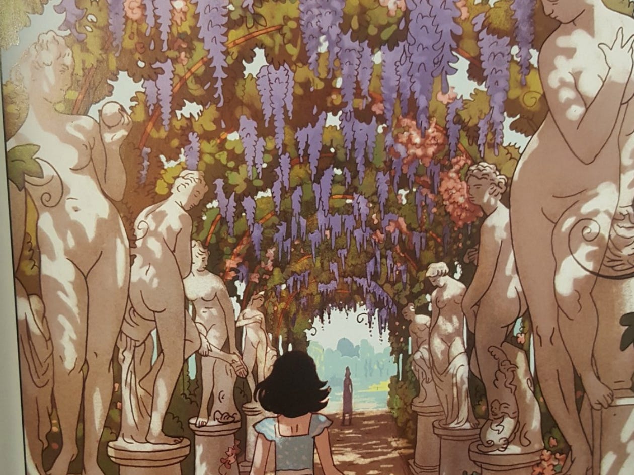 The book was challenged in March by Jennifer Pippin, chair of MOL's Indian River County chapter. Pippin objected to a "graphic scene" in the book in which Frank asks a friend if she would feel comfortable exposing their breasts to one another, only to be refused. No female breasts were actually exposed in the book as her friend declined to do so. Pippin also took issue with a portion of the book in which Frank walks past "sexually explicit" nude female statues (seen above). Although some of the statues' breasts and butts are shown, they are depicted with very little detail.
