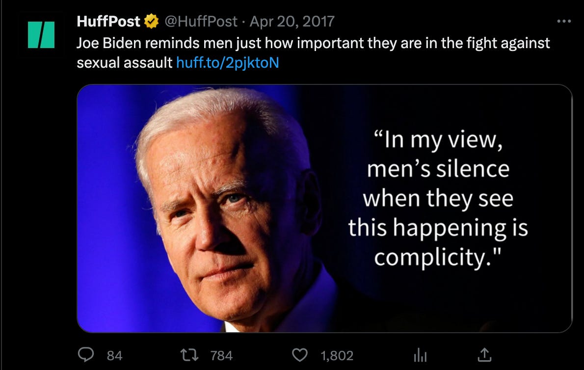Although she currently criticizes the notion of Biden being a champion of women's rights as hypocritical, it's worth noting that in 2017 she retweeted numerous posts that portrayed him in this role.