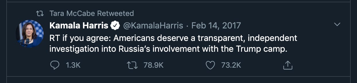 Once again, Biden defenders were correct in supposing she seemed strangely Russiacentric following withdrawal of her suit. Guess now it’s more or less confirmed what that was all about and whom the theatrics were really for. Just add it to the tick list of all those Russian people and things oddly surrounding Trump’s presence on the national, then world stage. Including his inauguration if you’ll remember (not to change the subject...).