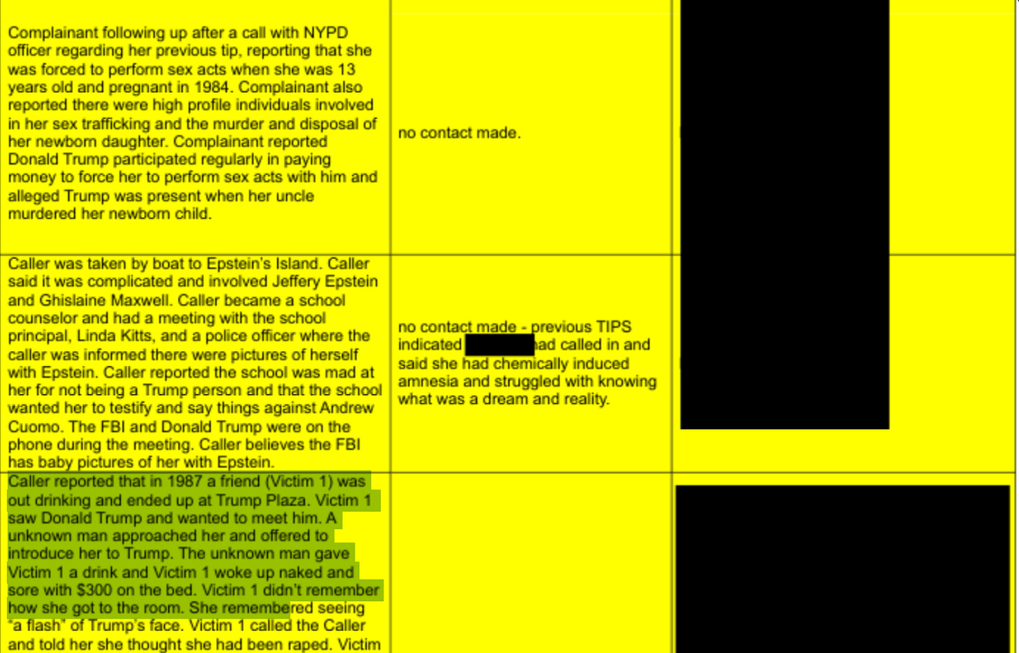 They contained disturbing claims related to Jeffrey Epstein and Donald Trump. They also contained multiple allegations naming Trump, sometimes directly, sometimes as a participant at events, sometimes as a figure present in environments described by complainants.