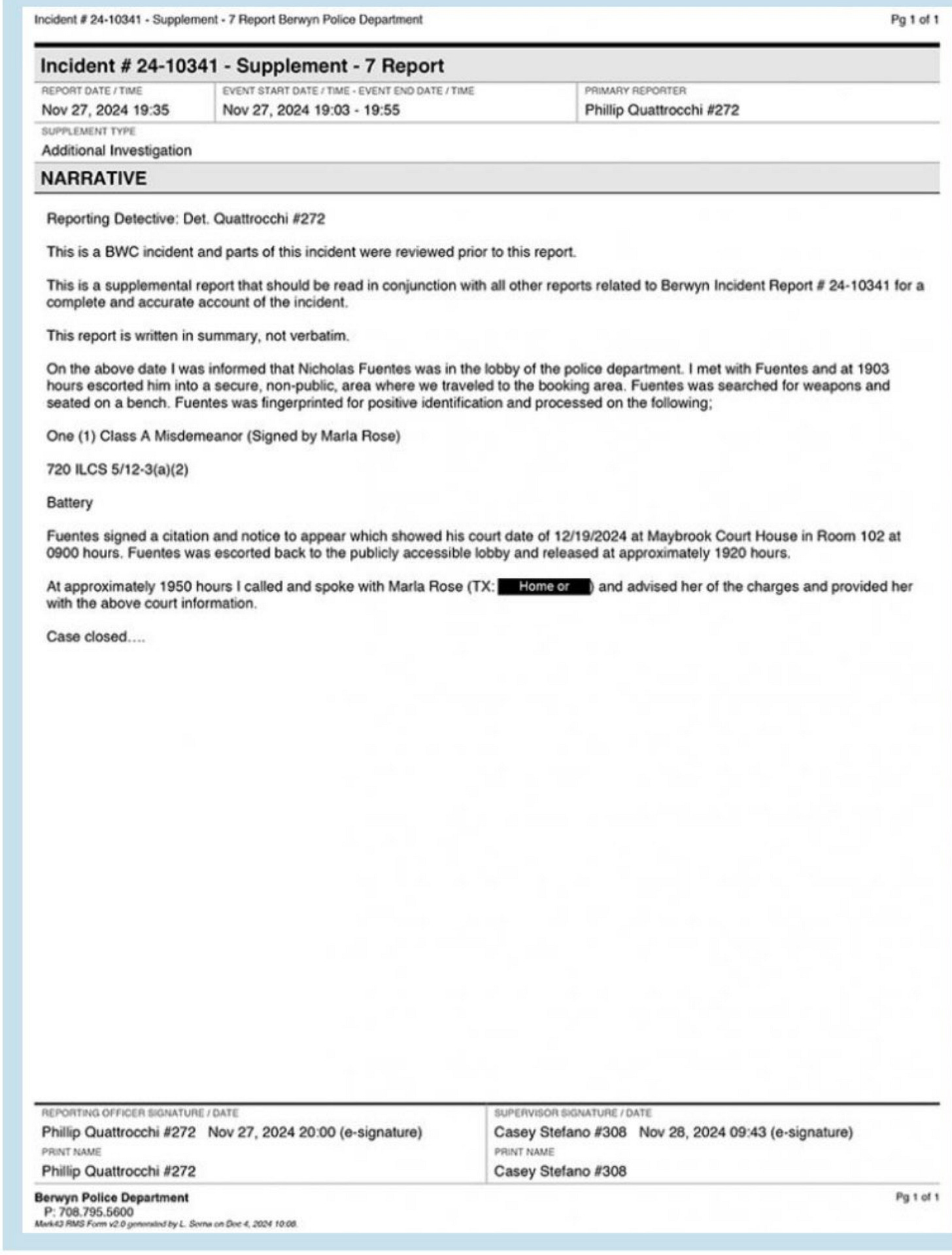 Fuentes was booked on November 27 — nearly two weeks after the incident — with the entire booking process taking less than an hour. He’s now slated to appear in court on December 29. The arrest comes on the heels of Fuentes’s personal information being posted online, an apparent reaction to his inflammatory online rhetoric.