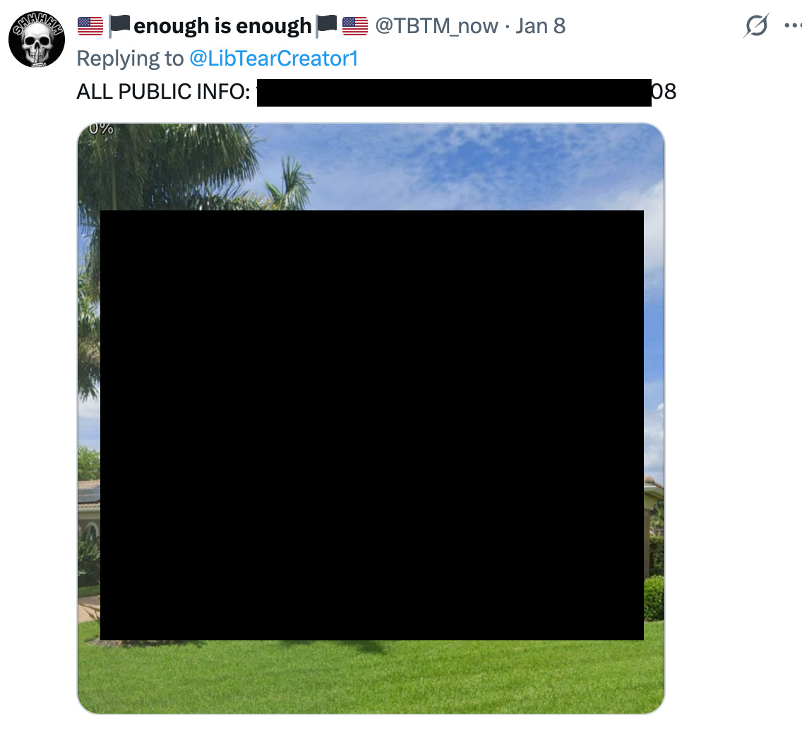 Despite multiple reports and clear violations of platform policies against doxxing and sharing private information, images of my home, videos of my property, and my personal address remain accessible on X, unremoved. This is not just negligence. It is negligence with consequences. People’s safety is at stake.